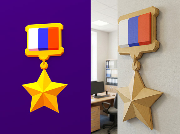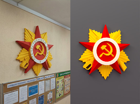 Паперкрафт-орден отлично подойдёт для создания праздничного антуража: он станет центральным элементом тематической фотозоны, украшением праздничного стола или даже частью патриотического мероприятия. Фигура добавит торжественности любому событию, связанному с 23 февраля.